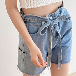 Luna Paperbag Denim Shorts Front zip fly Waist self-tie Loose fit Side cut out detail Raw edge hem Product Specification […]