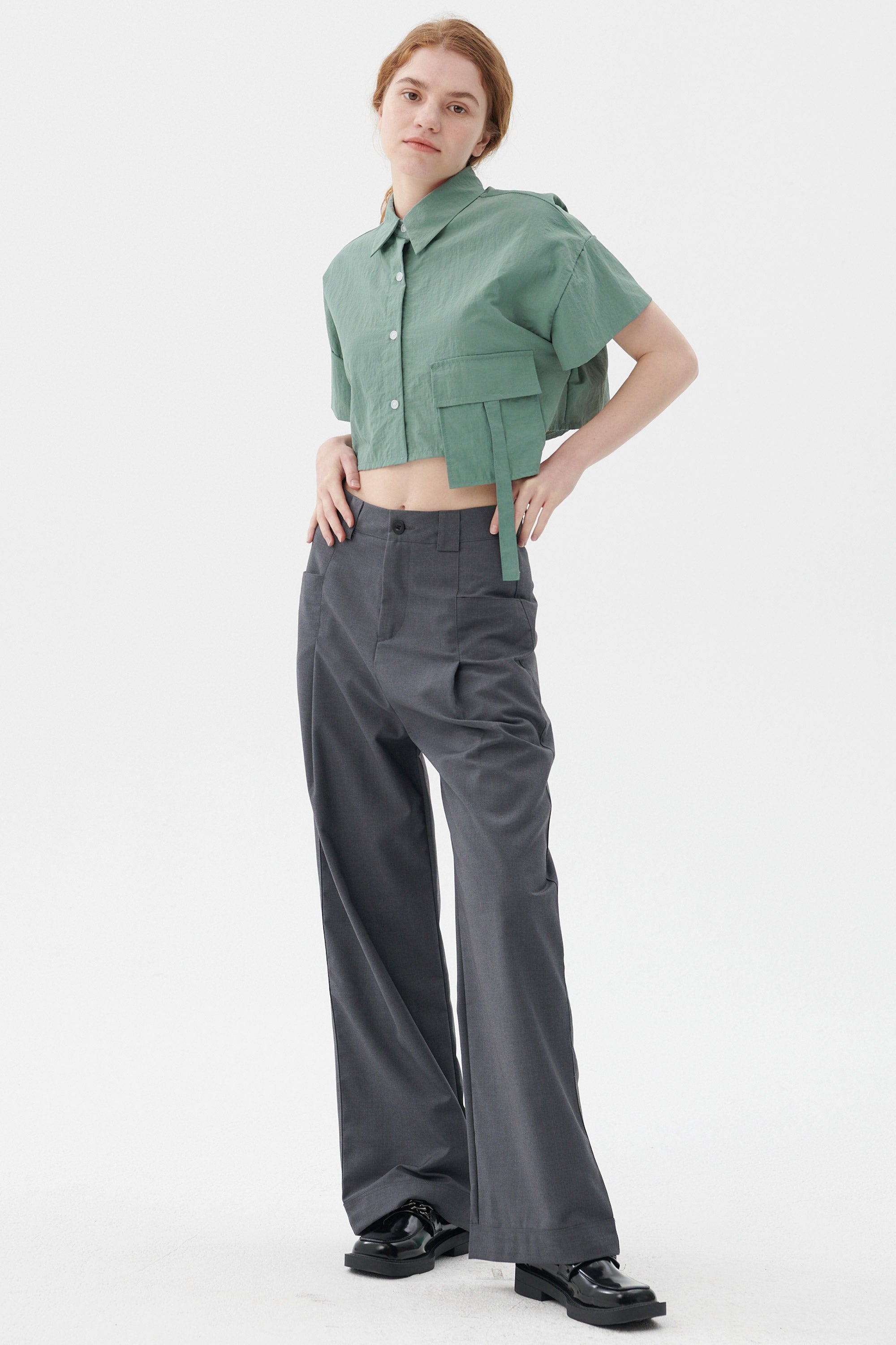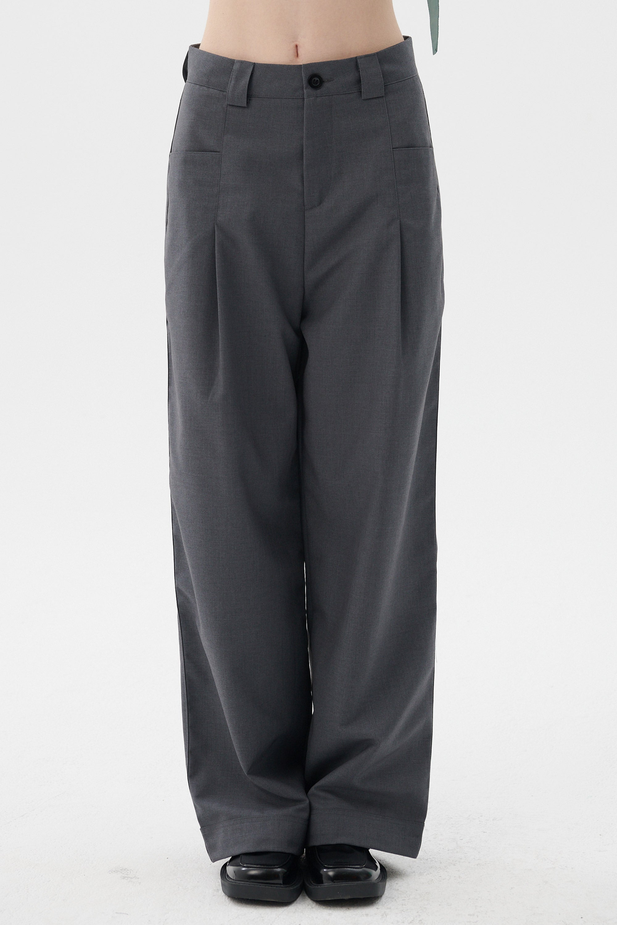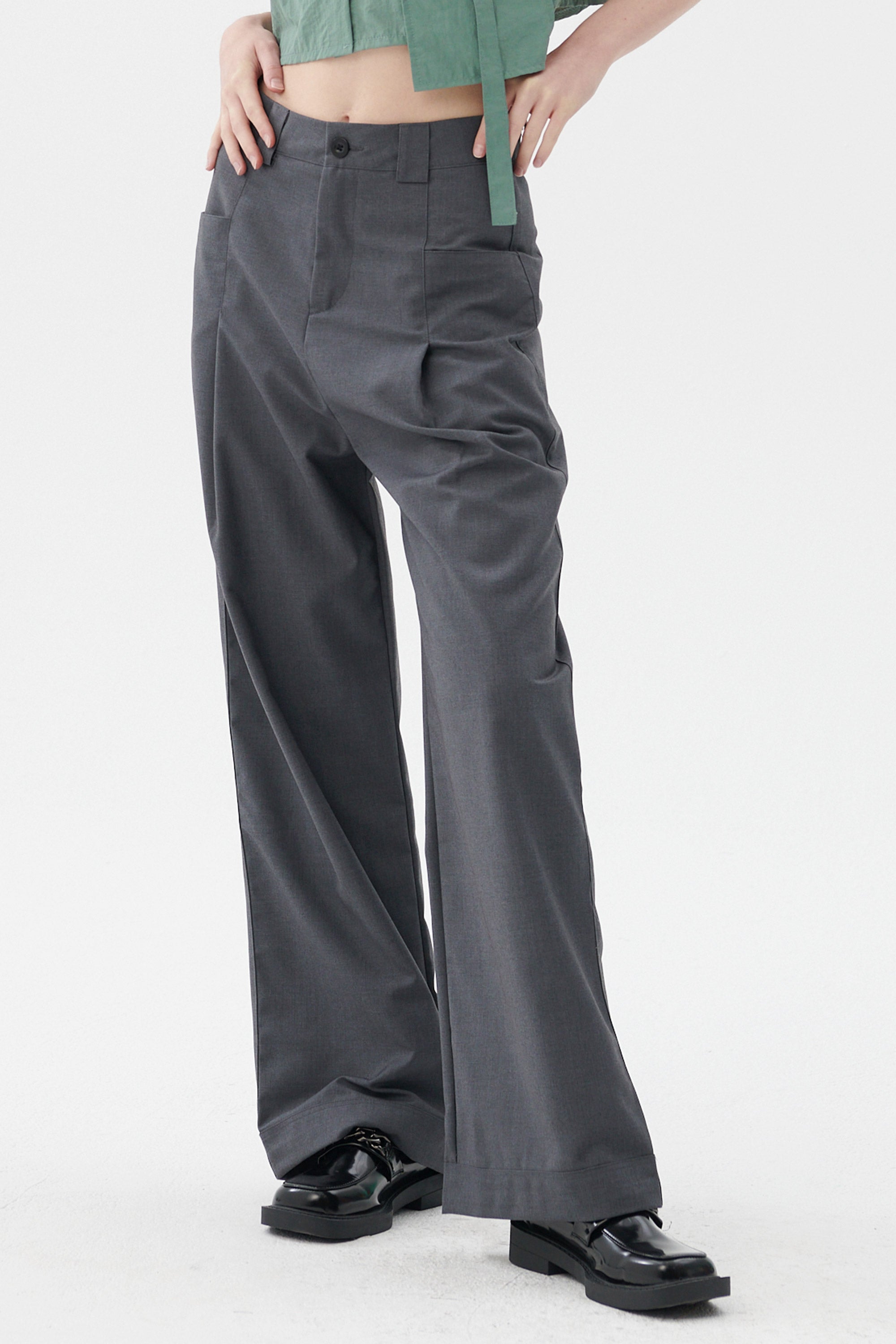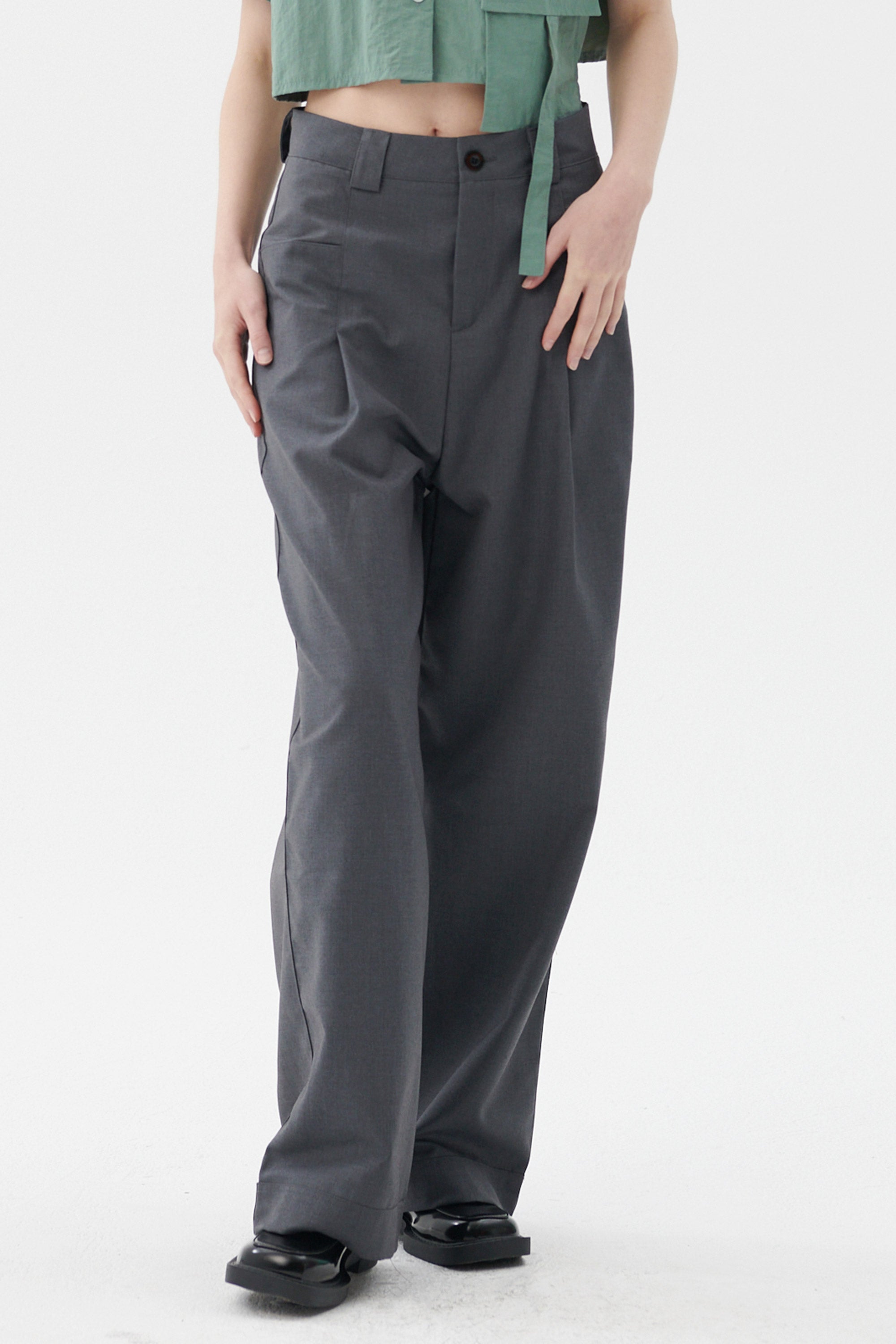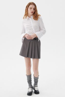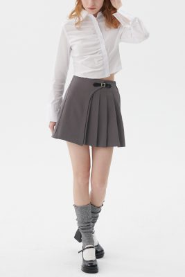 • Pleated front, wrap effect.